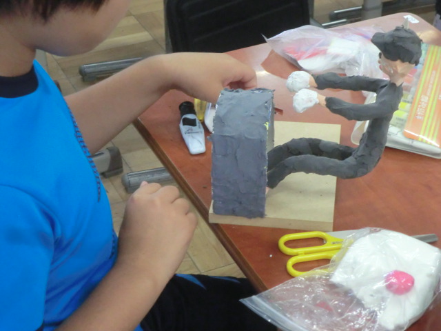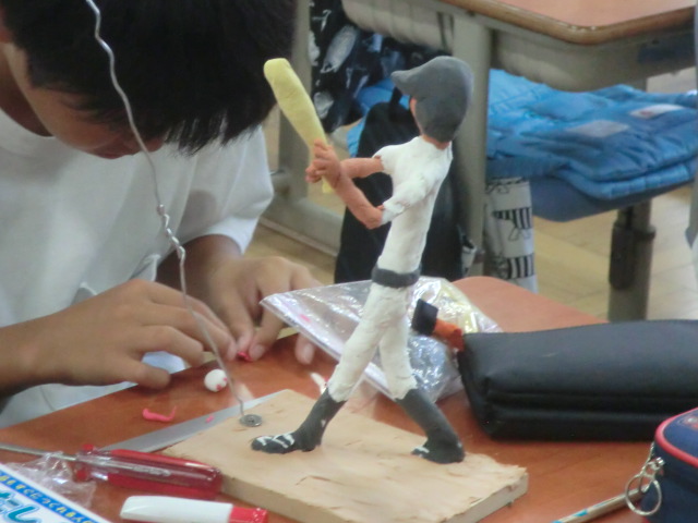 立体の素材は針金と粘土。土台に針金を固定して骨格を作り、粘土で肉付けをし、着色していきます。6年生それぞれの希望や夢が垣間見られる素敵な作品が出来上がりそうです。