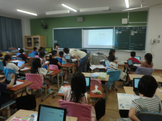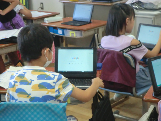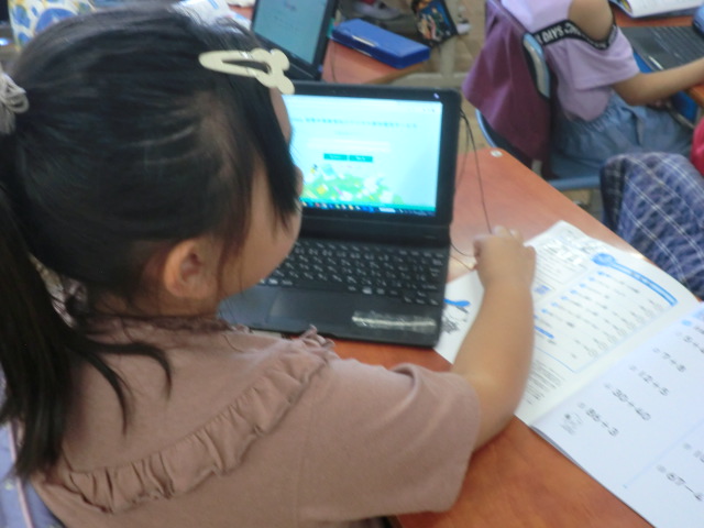 2年生でも、ワークブックとタブレット操作確認が進められていました。