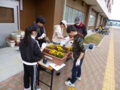 また、西門から児童玄関までの畑やプランターに花を植える作業をし、西門からの通路がはなやかになりました。