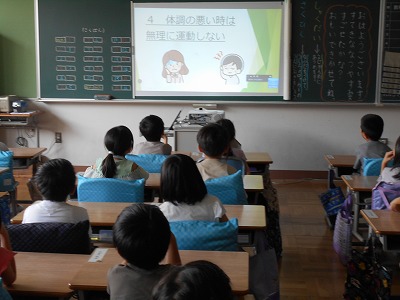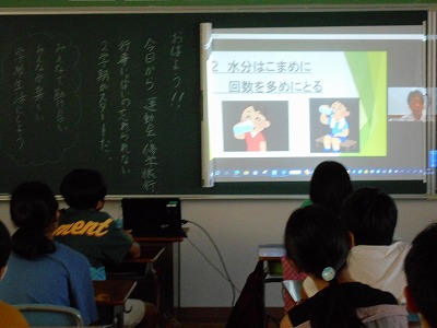 熱中症対策を中心に、全校に話をしました。元気に健康に9月を乗り切ってほしいと思います。