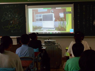 11時には、32度を超える気温になる暑さの中、始業式を迎えました。暑さ対策のため、今回も空調設備がある各教室でズーム配信による始業式です。