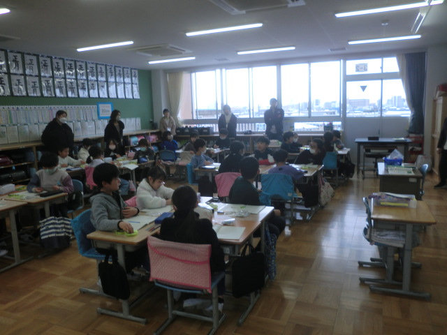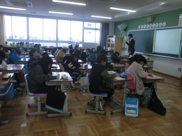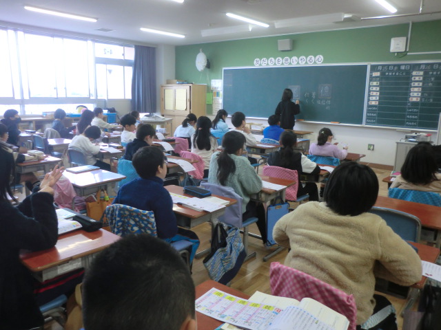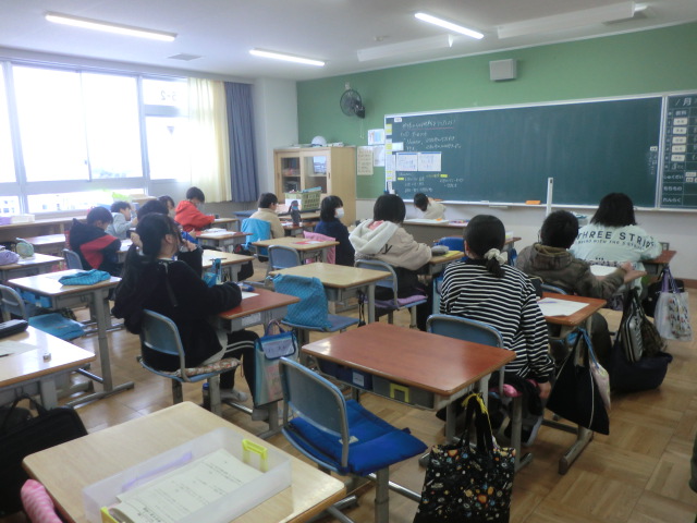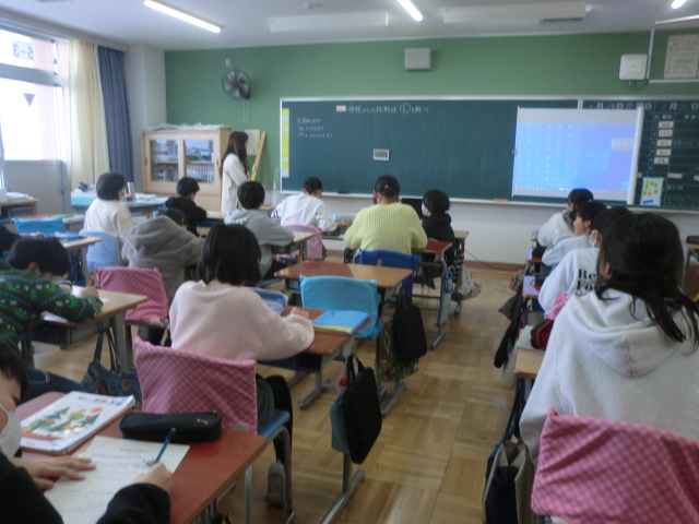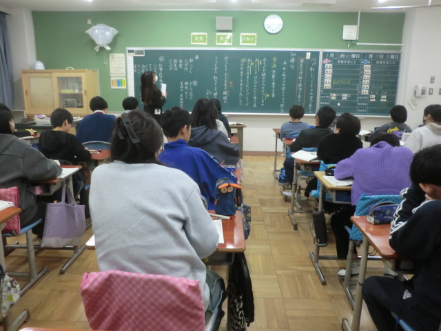大雪の翌日、多数の保護者の方に授業を参観していただきました。