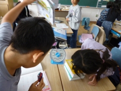 こちらのクラスでは、「1㎏作り大会」として、ピタリ1㎏になるようにモノを集めて、重さを予想し、グループで挑戦していました。