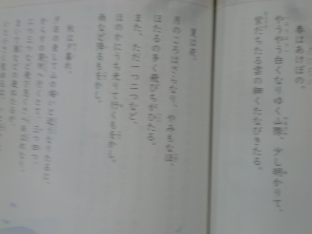 清少納言作「枕草子」冒頭です。5年生が「古文のえがく四季」の教材として学んでいました。