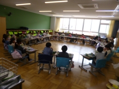 みんなで輪になって食べている学級もありました。