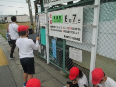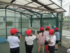 4年生の社会では「わたしたちのくらしとごみ」を学習しています。先週は、ゴミ収集車について学習しました。今回は、学校近くのゴミ集積所に行き、集積所にあるものをタブレットで写真を撮りました。