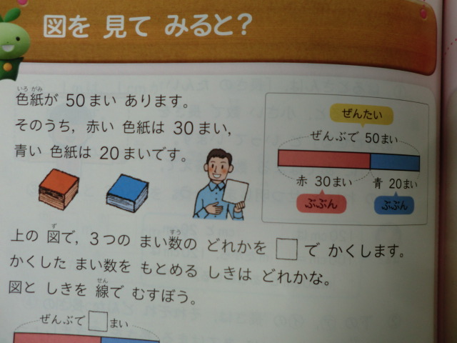 線分図があると、数字相互の関係が把握しやすくなります。その感覚を養う学習です。