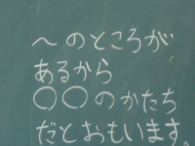 一生懸命説明することで、形の特徴を理解し、説明力まで高め合う1年生です。