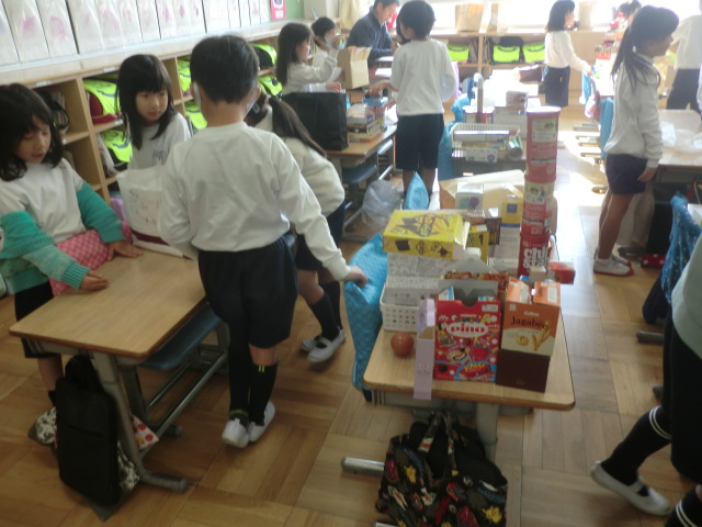 1年生算数「かたちあそび」。