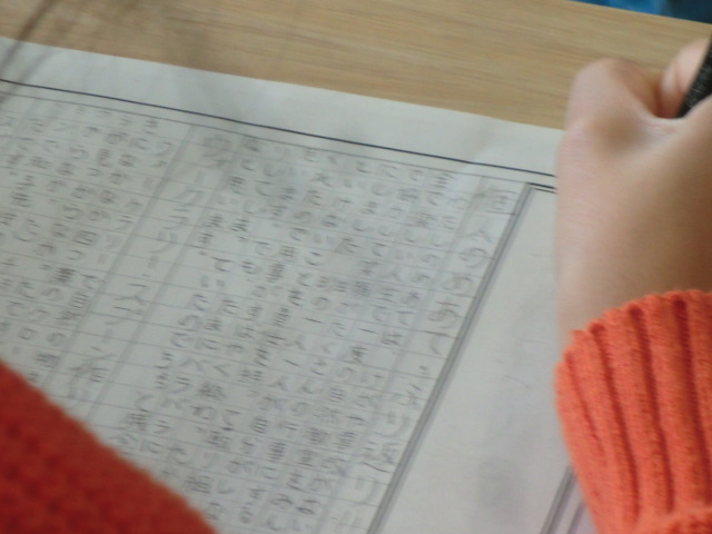 しおりを改めて見直し、自分の目当てを思い起こすところから記事を書き始める子もいました。