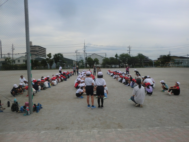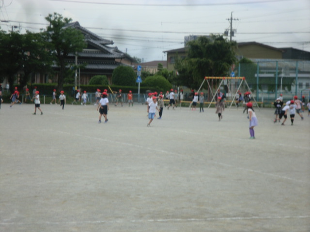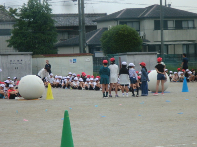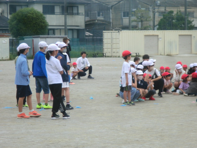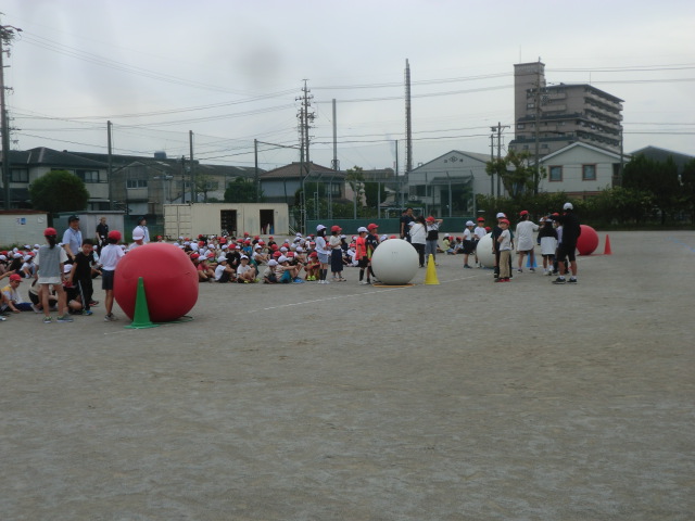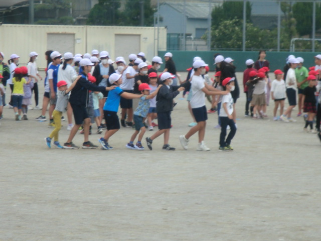 がんばって説明したことで、自己紹介から始まり、1年生と6年生の「じゃんけん列車」、2年生と4年生の「鬼ごっこ」、3年生と5年生の「大玉転がし」などのゲームを楽しく進めることができていました。