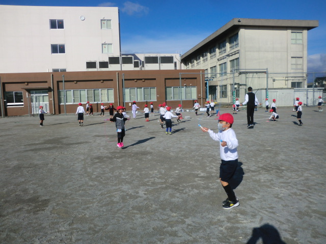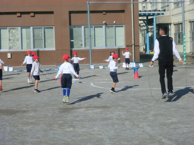 と、交差跳びや駆け足跳びを見せてくれました。ひっかけても「もう1回!」と笑顔で続ける元気な1年生です。