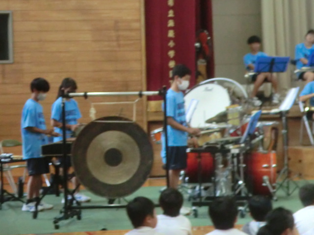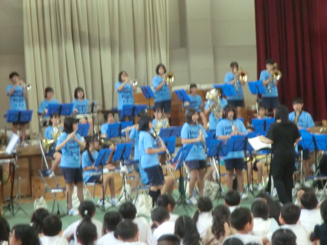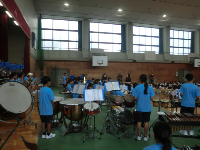 山手中学校吹奏楽部の皆さんが、体育館で演奏披露。