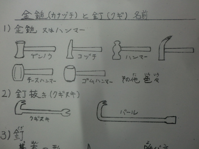 釘打ちに使う道具にもたくさん種類があることや、釘も多種多様。基礎知識を教えてもらい、今回は扱いやすいサイズと重さのものを使って製作しました。