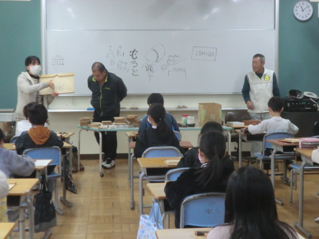 木工職人の方をゲストティーチャーにお迎えし、3年生図工で「釘打ち」を指導していただきました。「釘打ちトントン」と銘打ち、板に描いた文字線に沿って釘を打ち込み、作品を作ります。