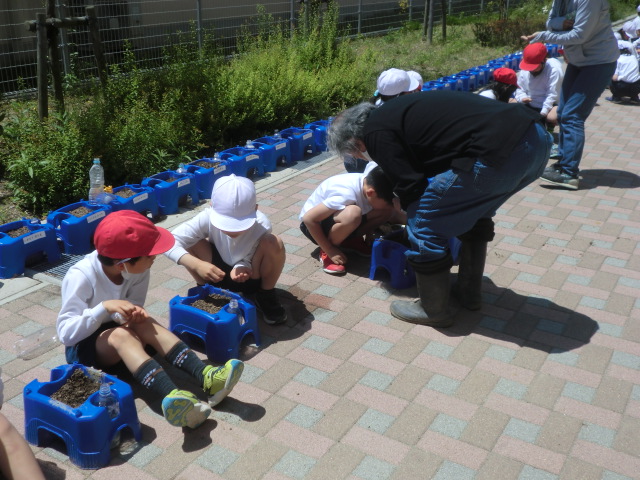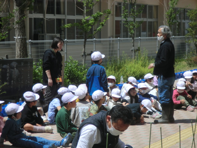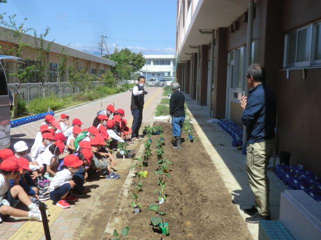 積極的に質問する2年生。これから収穫まで、大切に育てていきましょう。とても楽しみですね。