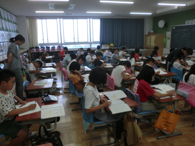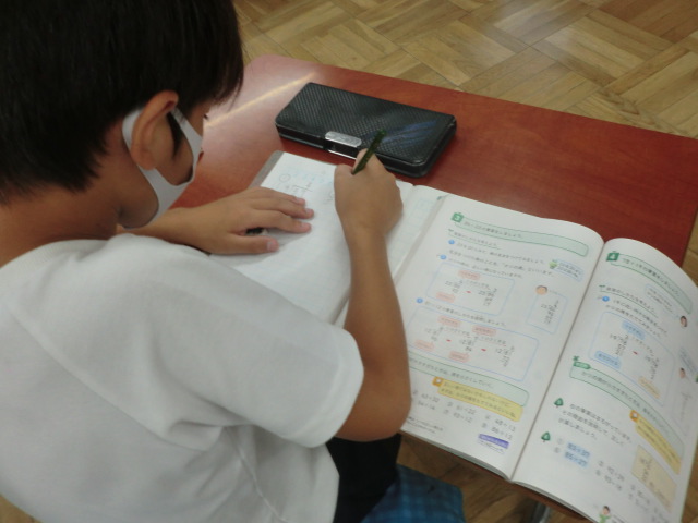 考え方や修正の仕方を学び、計算力アップに励む4年生です。