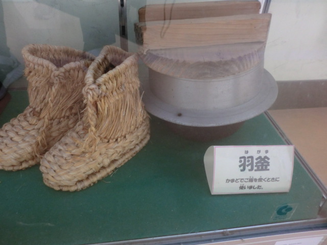 「火縄銃」「わらぐつ」「黒電話」「洗濯板」「こて」等々。昔話に登場する用具が並んでいます。