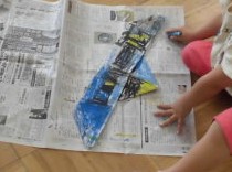 新聞紙を折ったり、開いたりしながら、素敵なハットを作りました。