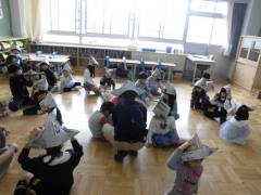 1年生では、新聞紙で「メキシカンハット」づくりに取り組みました。