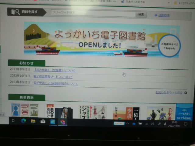 先月より「よっかいち電子図書館」が開館されました。