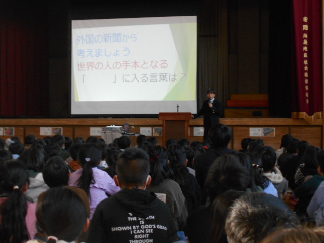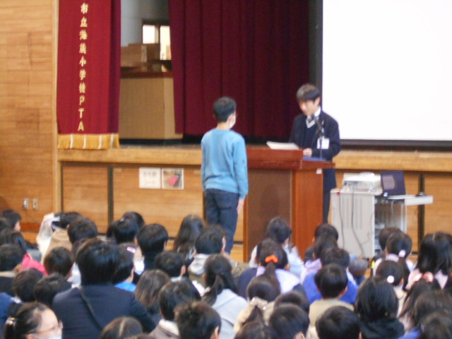 校長の話には、「日本人が当たり前にならんでいることが、世界の手本になっていること」について話が。