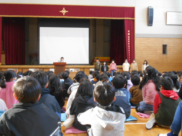 児童代表3~4年生からは、日々心掛けて取り組んでいることの発表が。
