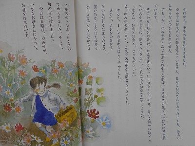 「『母さん、お肉とお魚と、どっちがいいの。』と、ゆみ子の高い声が、コスモスの中から聞こえてきました。」