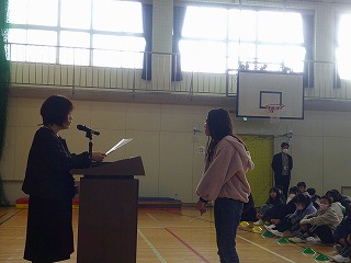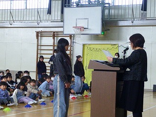 ★最初にみんなで校歌を歌いました。伴奏は6年生です。上手でした。みんなの歌声もきれいでした。