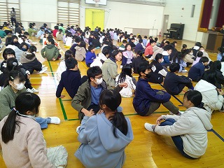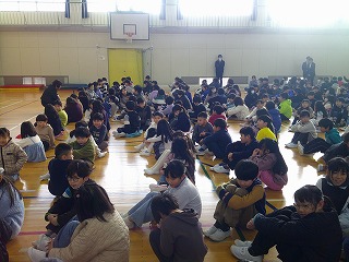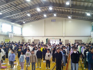 3学期が始まりました。久しぶりに子どもたちが体育館に集まってきました。体調不良で欠席の子もいて、残念ながら全員揃うことはできませんでしたが、子どもたちの元気な様子を見て、とてもうれしくなりました。