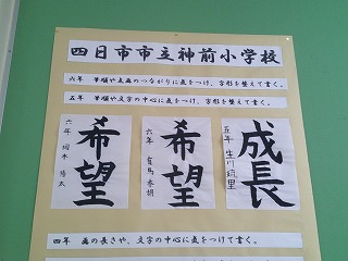 三泗小中書写展に各クラスで選ばれた入選作品が児童昇降口に掲示してあります。どの子も大変上手にかけています。素晴らしい作品ぞろいです。