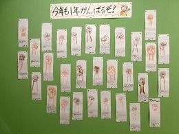 3年生は図工の作品に今年の目標を書きました。昇降口に掲示してあります。