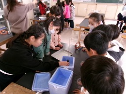 4年生の理科では「ものの温度と体積」を学習しています。水を温めたり冷やしたりしたときの体積の変化について実験していました。「温めたときに水があがった」「水が上がるということは・・・」実験をしながらいろいろな気づきの声が聞こえてきました。