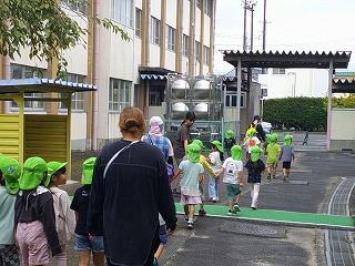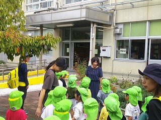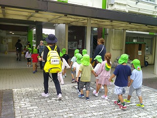 帰りに、職員室に寄ってくれました。「松ぼっくりを拾ったよ。」「蝉のぬけがらを見つけたよ。」と見せてくれる子もいました。さらに、職員室前に咲いている花を見つけて「これなあに?」と聞いてくれる子もいました。そして、「ありがとうございました」と上手にみんなであいさつできました。