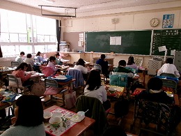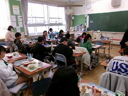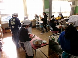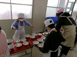 今日で2学期の給食が終了です。各クラスとも給食当番の子がしっかりと働き、素早く配膳ができていました。まだ食事は前を向いて食べていますが、楽しそうに食事をしていました。