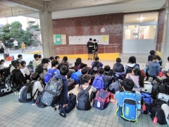 無事に学校に到着、ホールで解散式を行いました。