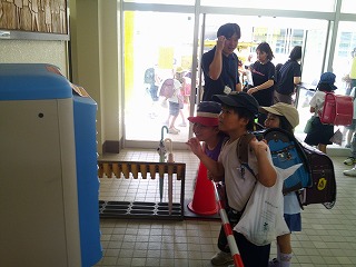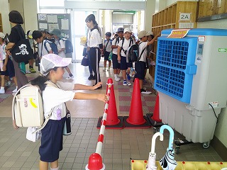 学校では、「登校時」「下校時」「休み時間のはじまりと終わり」に使用しています。子どもたちは、冷風扇の前に来ては、「涼しい~」と声を上げています。