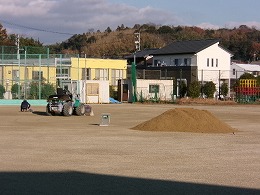 神前小学校のグラウンドはいつもきれいに整備されていますが、これでさらにいい状態になります。3学期、元気に活動する子どもたちの姿が楽しみです。