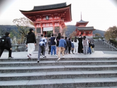 清水寺の見学です。さすがに朝が早いためとても空いています。