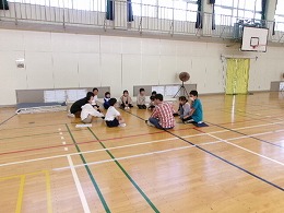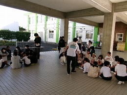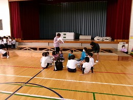 集会の後、各町ごとに集まって町別児童会を行いました。各班ごとに朝の集合や登校の様子を振り返っていました。