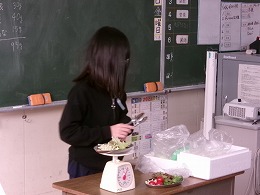 4年生では、一食で摂るとよい野菜の量を実際にお皿にのせてみていました。思ったよりも多くの量が必要なことが分かったようでした。