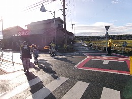 寒さを感じる朝でしたが、安全協会の方々の見守りや声かけに、子どもたちも「おはようございます」と元気にあいさつをしていました。