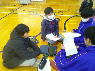 グループに分かれ、中学生が司会をしてくれました。「こんなうわさがあったら、信じる?」「こんな写真があがったら…?」などと、みんなで考えていました。