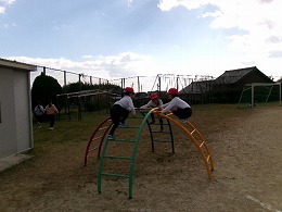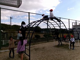 日差しも弱く寒い日となりましたが、30分休みの運動場は元気に遊ぶ子どもたちでいっぱいでした。サッカー、ドッジボール、遊具、フープ、一輪車等それぞれの遊びを楽しんでいました。