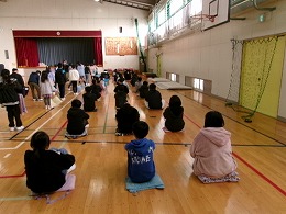 体育館に一番乗りした6年生。みんなを待つ姿が素敵でした。