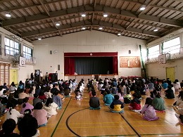 1限目、全員が体育館に集まり終業式を行いました。