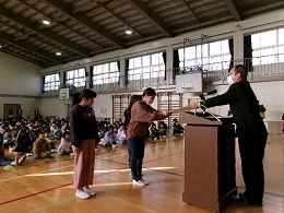 終業式の後、人権ポスターの表彰を行いました。