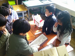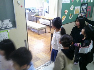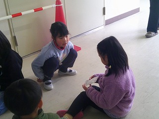 最初に1年生を迎え入れる挨拶をしました。そのあと、生活科で作った「手作りの遊び」をこども園の子たちが楽しく遊べるように、説明をしたり、遊び方を伝えたりしていました。その後、体育館、保健室、職員室、校長室などを1年生が紹介しました。「ここは、けがをしたときに行く場所だよ。」「こんなに広いんだよ。体育館って」と優しく教えていました。1年生の子どもたちの成長をとても感じました。