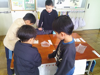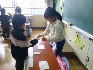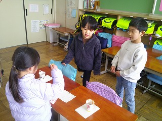 「ぼくが2年生になったら、1年生の教室に行くから、一緒に遊ぼうね。」などと声をかけている子もいました。最後に1年生が育ててアサガオの種をプレゼントしました。みんなで、「またね~」と、バイバイをして別れました。