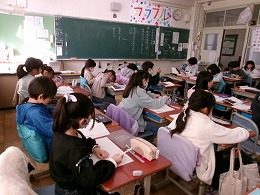 3年生が国語で「モチモチの木」を学習しています。今日は担任が大きな絵本を使って読み聞かせをしていました。教科書にも挿絵がたくさんありますが、さすがに迫力が違います。子どもたちの学習への意欲がさらに高まるはずです。